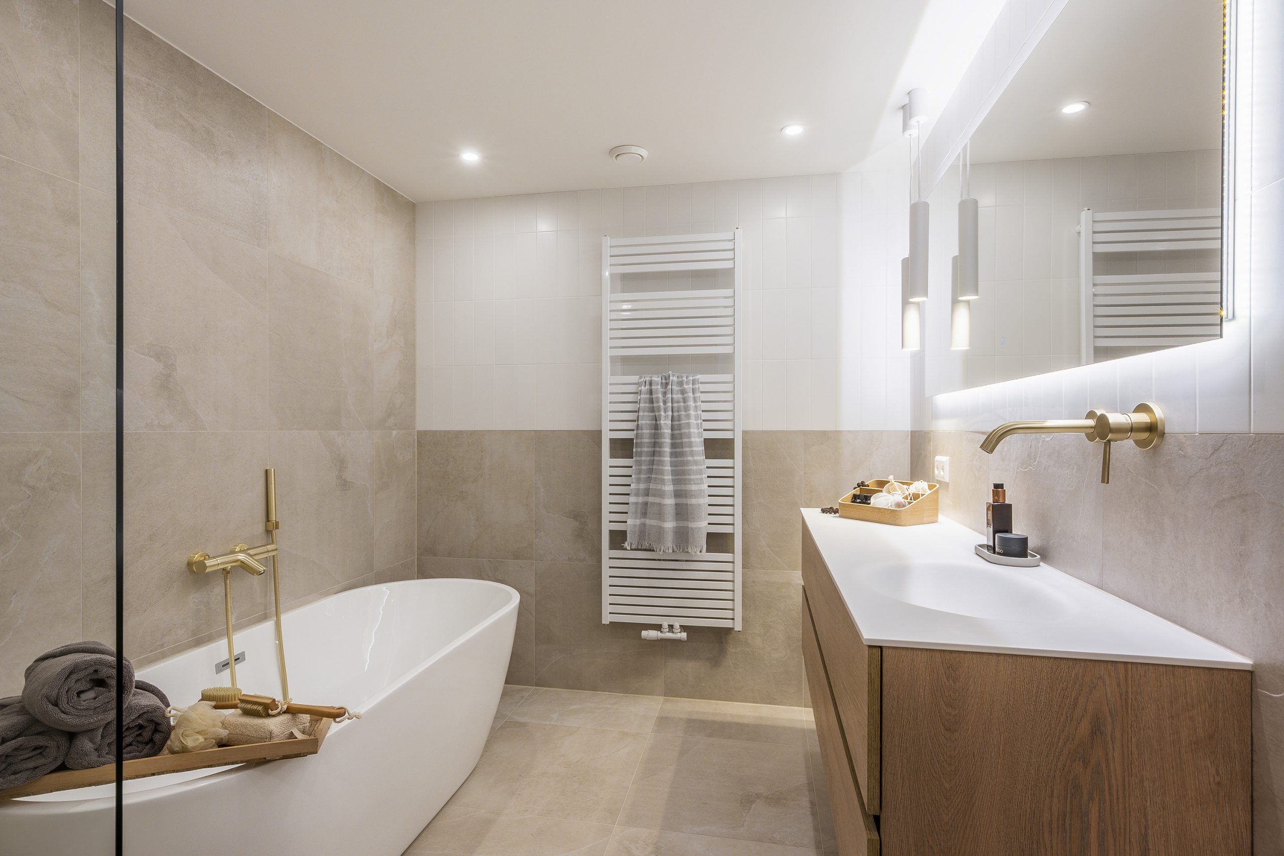 Door deze materialen te combineren ontstaat een evenwichtige, elegante sfeer waarin elk detail klopt.